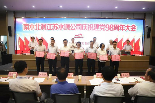 根据“牢记使命、不忘初心”主题教育安排,7月1日下午,江苏水源公司在宁召开庆祝建党98周年大会,缅怀党的历史,学习贯彻习近平新时代中国特色社会主义思想,表彰公司先进典型,动员公司各级党组织和全体党员干部,不忘初心,牢记使命,勇于担当,为推动公司高质量发展不懈奋斗。公司党委副书记、总经理荣迎春讲话,党委副书记李松柏主持会议。公司领导班子成员,各党总支和党支部委员、本部全体党员,公司在宁助理级以上干部,以及受表彰的先进集体和优秀共产党员代表等120多人参加会议。