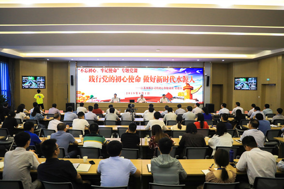 按照江苏水源公司党委“不忘初心、牢记使命”主题教育安排,8月1日下午,公司党委书记、董事长荣迎春在专题调研的基础上,以“践行党的初心使命、做好新时代水源人”为主题,为干部职工作专题党课。省委主题教育第十三指导组组长王惠荣、成员侍玲萍同志出席指导。公司党委副书记、总经理袁连冲主持会议。公司领导班子成员参加会议。