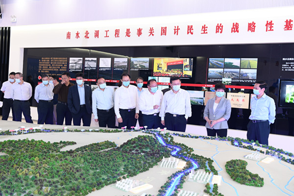 蒋旭光一行先后来到华体会手机网页版_华体会(中国)江苏水源公司总部大楼、扬州市江都水利枢纽、华体会手机网页版_华体会(中国)洪泽站、解台站等实地调研。在江苏水源公司,蒋旭光一行查看了江苏华体会手机网页版_华体会(中国)调度指挥中心、展陈室、五星级档案馆、“水源红”党建文化活动阵地等,观摩了工程智能化调度运行系统演示,并召开座谈会详细了解了江苏水源公司在经营拓展、企业管理、队伍建设等方面情况。在江都水利枢纽,蒋旭光一行调研了江苏华体会手机网页版_华体会(中国)工程展览馆、江都水利枢纽展览馆和江都第四抽水站等地,听取了江苏治水历程、江水北调工程和江都水利枢纽等情况介绍。在洪泽站和解台站,蒋旭光一行实地考察工程运行管理、维修养护、安全生产、标准化建设和水生态资源开发利用成效等情况。