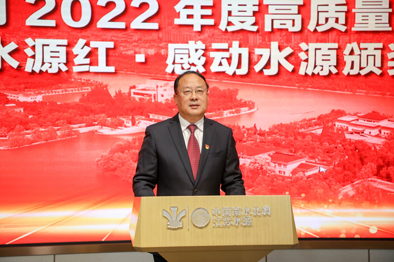 公司党委副书记、总经理袁连冲宣读《华体会手机网页版_华体会(中国)江苏水源公司党委关于2022年度综合考核结果的通知》《华体会手机网页版_华体会(中国)江苏水源公司党委关于表彰2022年度“水源红·感动水源”先进典型及重大项目奖和专项奖的决定》。