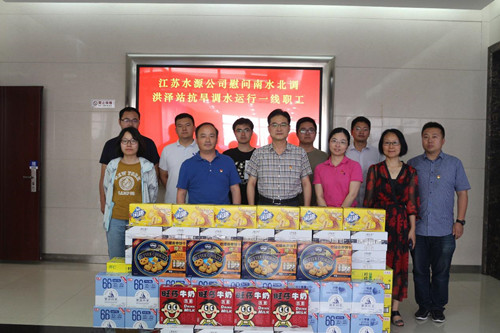 7月10日,冒着酷暑,江苏水源公司党委委员、副总经理冯旭松带着公司党委和工会的殷切关怀,赴洪泽站工程现场看望慰问坚守在抗旱调水运行一线的员工。淮安公司党总支书记、总经理王兆军陪同慰问。