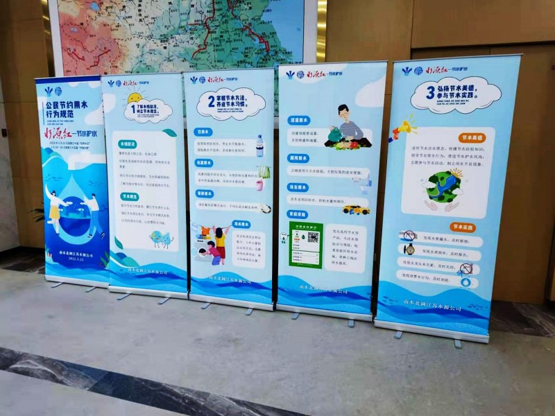 淮安分公司通过悬挂宣传横幅、张贴宣传海报、LED大屏投放等形式,营造浓厚的宣传氛围,宣传普及节水知识和水生态保护知识。