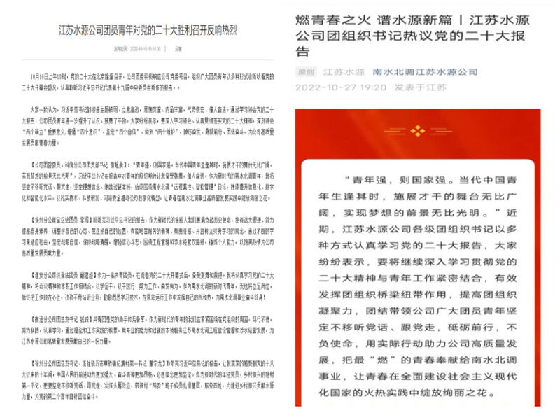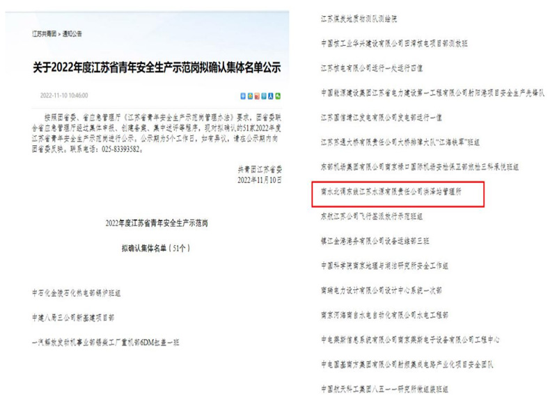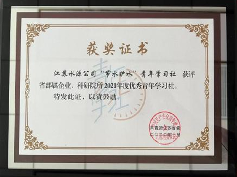 2022年,江苏水源公司团委在公司党委和团省委正确领导下,带领广大青年求真务实,开拓进取,在服务大局中强化自身建设,在改革发展中提升工作水平,充分发挥党的助手和后备军作用,荣获全省共青团工作先进单位称号、省优秀青年学习社、省十佳青年志愿服务项目等荣誉称号。
