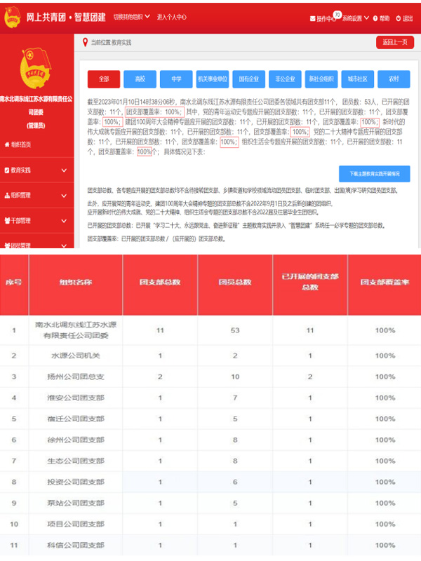 加强基层团组织规范化建设。坚持党建带团建,依托智慧团建系统,落实专人管理,团员关系及时转接,定期督促下级团支部规范开展“三会两制一课”,做好信息核实、录入、更新工作,实现党史学习教育、专题组织生活会、主题团日、先进性评价和对标定级完成率100%。
