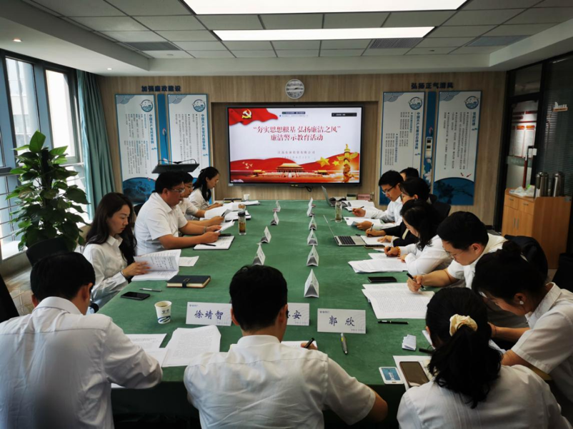 为深入开展学习贯彻习近平新时代中国特色社会主义思想主题教育,增强公司全体干部员工“不想腐”的思想自觉、行动自觉,营造风清气正、干事创业的良好氛围。6月13日下午,投资公司组织在公司警示教育活动室开展“夯实思想根基弘扬廉洁之风”廉洁警示教育活动。投资公司及咨询公司全体党员;鸿基公司、宿迁东源公司党支部书记、纪检委员、党员代表参加会议。
