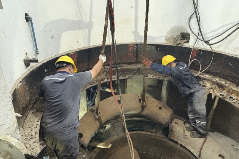 近日,扬州分公司(维检中心)圆满完成洪泽站1#水轮发电机组解体工作,标志着机组大修迈入下一个关键阶段。期间,分公司“设备应急保障”青年突击队发冲锋在前、勇担重任,高效完成混凝土凿除、底环分段吊出等核心作业,为机组后续深度修复与改造奠定了坚实基础。
