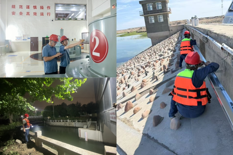 在三千公里外的新疆水库标准化建设项目部,淮安分公司青年骨干坚守在新疆的广袤戈壁上,全力推进项目实施。聚焦标准化创建软件整编工作,认真梳理各站点管理标识类型、内容、样式,细究各站点现状管理模式,在“量身”中做好管理手册编制工作。抓牢标准化建设硬件提升改造,结合新疆早晚温差大的气候特点进行错峰作业,扎实推进闸房外观形象提升、设备线缆改造、闸门除锈喷漆、启闭设备维养出新等工作,工程面貌焕然一新。稳步推进“信息化”平台建设工作,对标对表水库标准化5大部分内容,初步搭建信息化需求分析框架,同步对接开发单位攻坚数据模型,全心全意为业主做好服务。