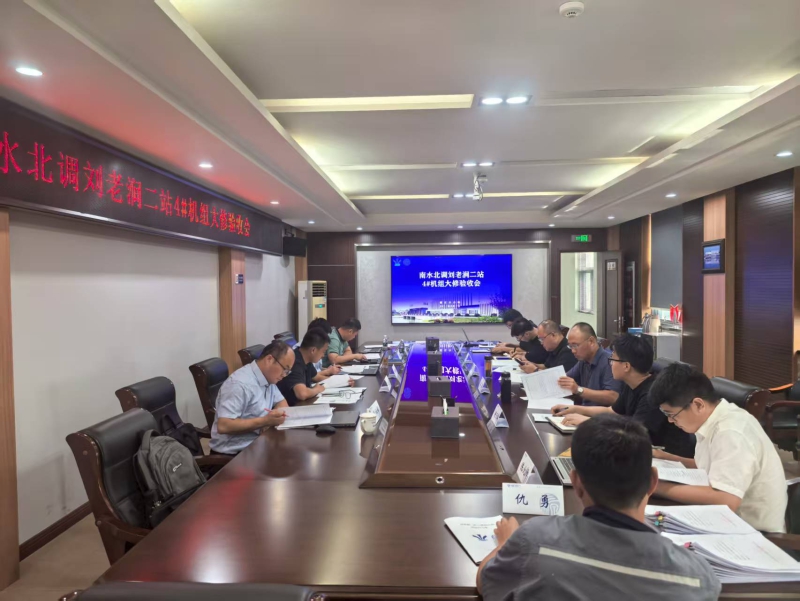 验收工作组查看了项目完成情况,组织开展了机组试运行,并对运行期间电气量、温度、振摆、渗漏水及上位机通讯等各项参数进行了详细检查,确保机组的各项运行参数均达到规范要求。随后召开了验收工作会议,听取现场管理机构、实施单位工作汇报,对机组安装及试验记录、试运行数据等技术档案资料进行检查。通过讨论,验收组一致认为刘老涧二站4#机组大修项目已全部完成,机组调试顺利,运行参数良好,施工质量满足有关标准,档案资料基本完备,同意通过项目验收。