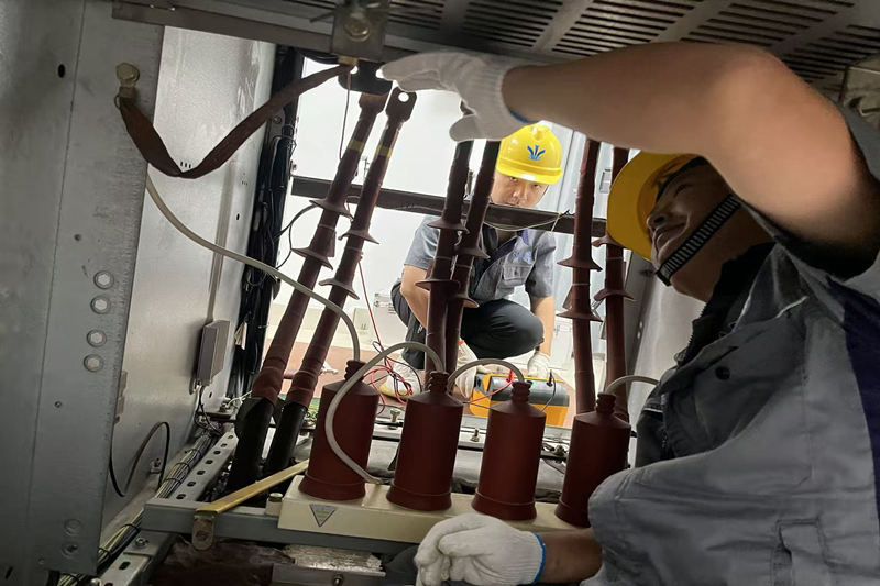 “速度再快,质量也不能打折扣。”试验过程中,突击队严格遵循规程规范,全面排查设备健康状况,精准诊断出10kV进线柜、5#主机柜绝缘套管绝缘值下降等隐患。在对站变柜损坏的多功能仪表检测过程中,发现该仪表存在故障,试验团队立刻联系管理单位一同着手处理,从拆除故障仪表、到接线调试、数据校准,全程仅用30分钟解决并处理问题,实现“发现即处置、处置即闭环”,确保设备隐患不遗留。