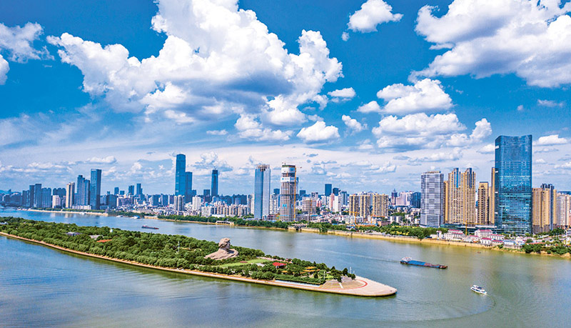 湖南省长沙市通过建立河湖长制,大力治理河湖环境,建设城市美丽河湖、幸福河湖。图为流经长沙市的湘江及江中的橘子洲头。 水利部供图