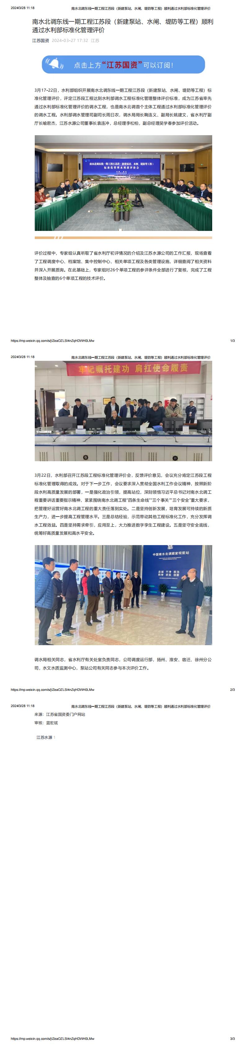 江苏国资:华体会手机网页版_华体会(中国)东线一期工程江苏段(新建泵站、水闸、堤防等工程)顺利通过水利部标准化管理评价