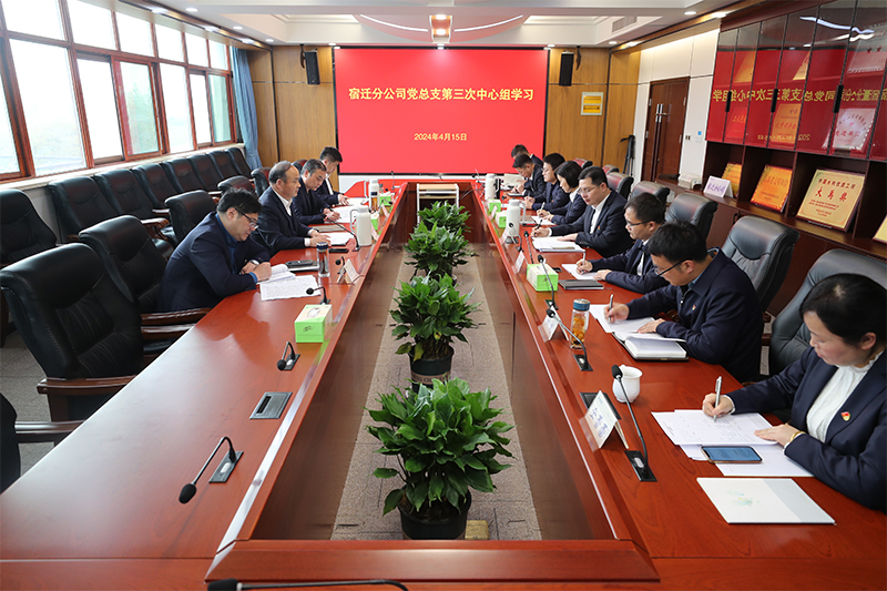 4月15日,宿迁分公司党总支召开理论学习中心组第三次集体学习会,深入学习习近平总书记在全国两会期间的重要讲话精神和全国两会精神,学习贯彻省委关于传达学习习近平总书记参加江苏代表团审议时重要讲话精神的会议精神,围绕学习内容开展专题交流研讨,结合宿迁分公司实际研究部署学习贯彻工作举措。宿迁分公司党总支书记、总经理主持会议并讲话,党总支领导班子成员参加会议。