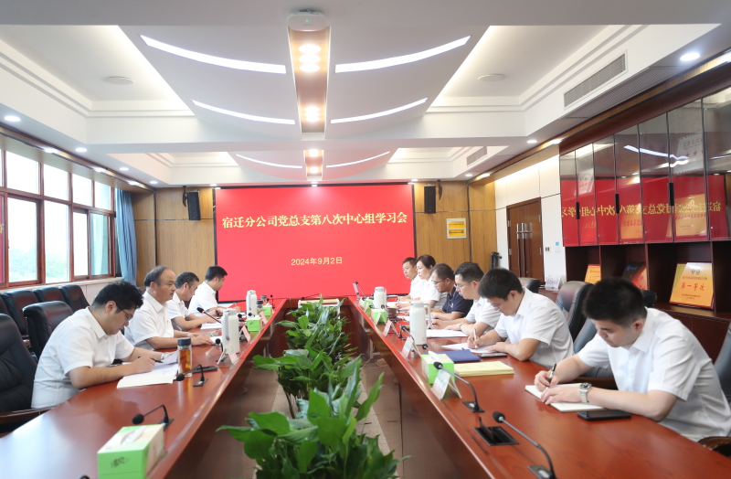 9月2日,宿迁分公司党总支召开理论学习中心组第八次学习会,传达学习党的二十届三中全会精神。分公司党总支成员、各部门负责同志参加学习会。