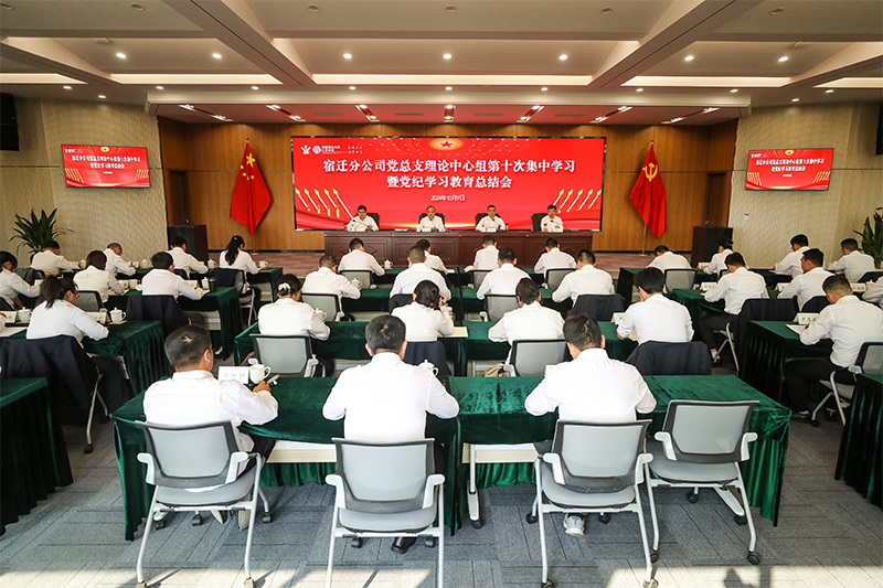 10月9日,宿迁分公司召开党总支理论中心组第十次集中学习暨党纪学习教育总结会,传达学习习近平总书记关于党纪学习教育的重要指示精神,贯彻落实中央和省委党的建设工作领导小组会议精神以及江苏水源公司党纪学习教育总结会议精神,全面总结宿迁分公司党纪学习教育工作,对巩固深化党纪学习教育成果作出部署。