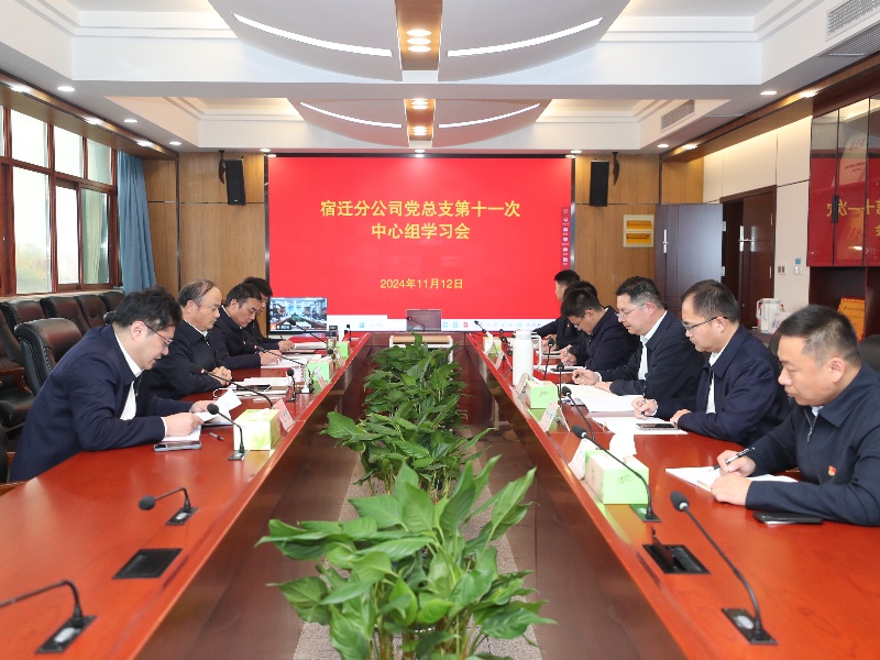 11月12日,宿迁分公司召开2024年党总支理论学习中心组第十一次集体学习会,专题学习习近平文化思想。公司党委副书记徐向红以视频方式进行列席旁听。宿迁分公司党总支委员、领导班子成员和各部门、水文水质中心、泗洪站管理所等部门负责同志参加学习。