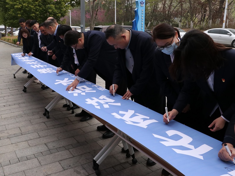 3月22日“世界水日”当天,徐州分公司在管理设施一楼举办主题活动签名启动仪式。全体员工在“强化依法治水携手共护母亲河”主题宣传横幅上郑重签下自己的名字,纷纷表示要从点滴做起,从身边事做起,珍惜水、节约水、爱护水,做保护水资源的践行者、传播者和示范者。
