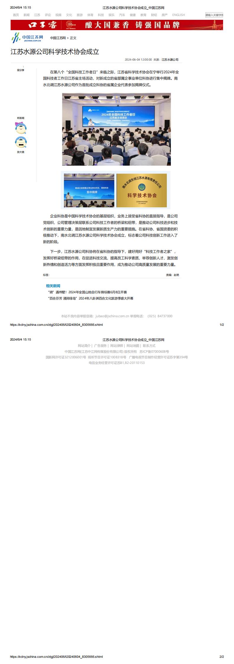 中国江苏网:江苏水源公司科学技术协会成立