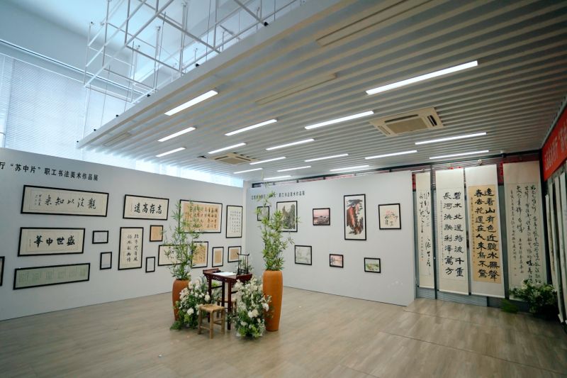 为促进水利干部职工文化交流,营造团结向上、奋勇争先的良好氛围,9月13日下午,由省水利厅厅属工会“苏中片”文体活动组委会主办,华体会手机网页版_华体会(中国)江苏水源公司扬州分公司承办的“筑梦新时代 挥毫新征程”职工书法美术作品展在扬州分公司正式开展。省水利厅工会主席余波,江苏水源公司党委副书记、工会主席徐向红,“苏中片”8家单位主要负责同志、工会主席(副主席)、工会工作人员及参赛代表参加活动。