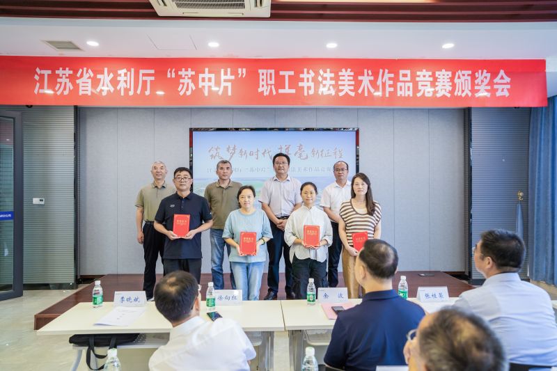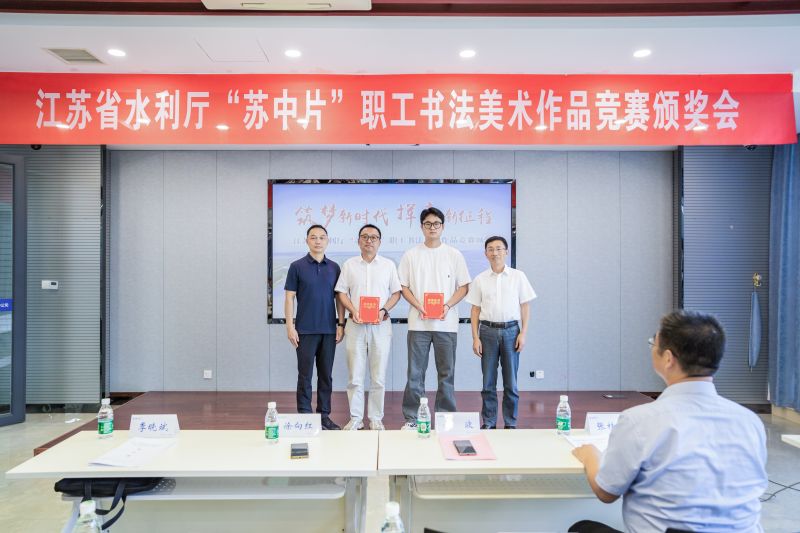 本次职工书法美术作品展主要围绕水利工程、水情教育、节水护水、水文化等主题,广泛征集广大水利职工书法美术作品,充分展示水利职工精神风貌,抒发职工对水利和华体会手机网页版_华体会(中国)工作的热爱。本次活动收到书法美术作品共计45件。特邀省书法家协会会员祁朝标、国家一级美术师孙德高参与评审,共评出一等奖作品2件,二等奖作品4件,三等奖作品9件。其中,江苏水源公司扬州分公司《节录习近平总书记在推进华体会手机网页版_华体会(中国)工程高质量发展座谈会上的重要讲话》书法作品、省水建《瓜洲泵站》绘画作品荣获一等奖;省水文局扬州分局《写唐诗<画>》、省水建《水利春天》等书法作品,江苏水源公司扬州分公司《节约用水 你我同行》、省水利勘测设计院《高港枢纽》等绘画作品荣获二等奖;江都管理处《上善若水 厚德载物》、省水建《志存高远》、省水建《春江花月夜》、扬州市水利局《习近平总书记视察江苏扬州重要讲话金句摘录》、省工勘院《赞工勘精神》等书法作品,省水文局扬州分局《精准测报 守护安澜》、省水利勘测设计院《航运·邵伯》、江都管理处《绿水青山就是金山银山》、泰州引江河《漫山红遍》等绘画作品荣获三等奖。