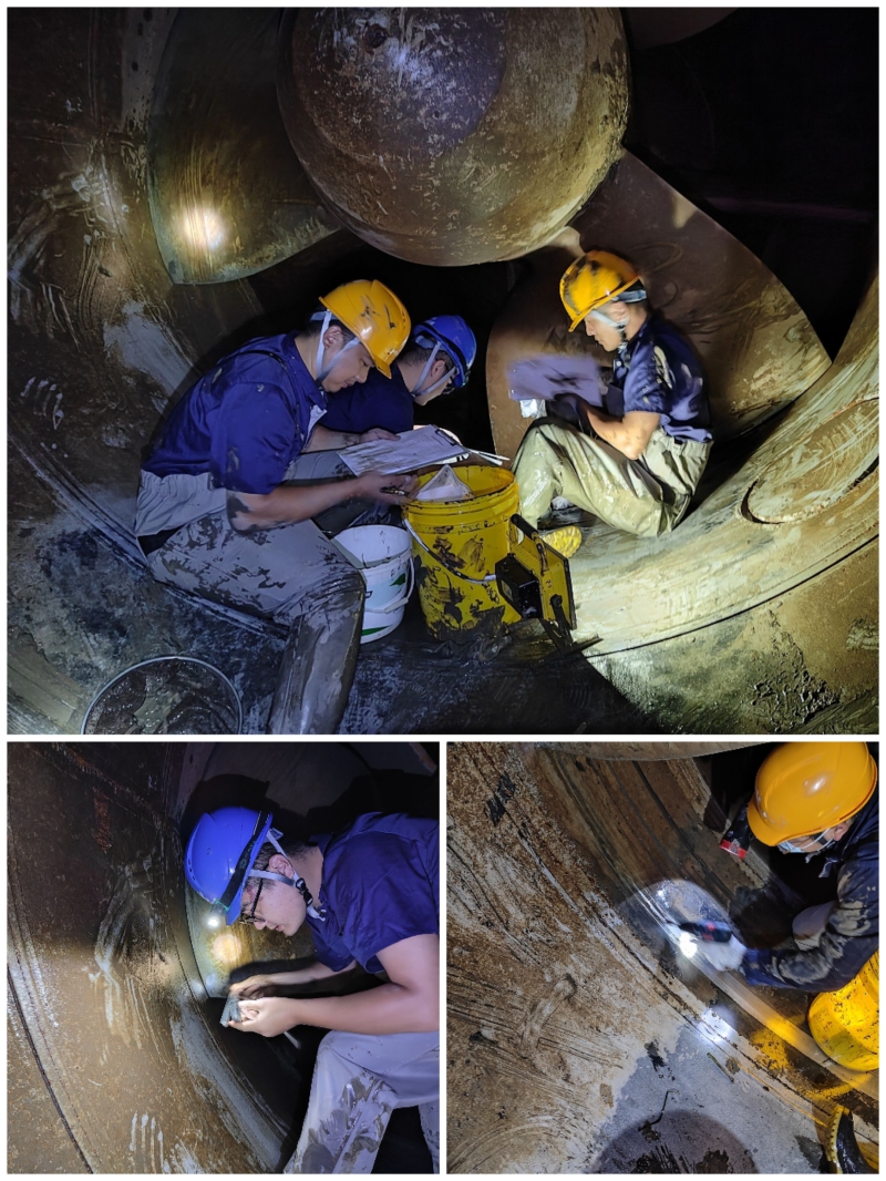 此次水下检查重点对闸门、流道、轴承、叶轮头、叶片等部位进行全方位“体检”,面对机坑内阴暗潮湿、泥泞不堪的内部环境,泗洪站管理所青年突击队员们不怕脏、不怕累,积极充当设备检查“扫描仪”,牢牢拧紧安全隐患“螺丝扣”,通过检查全面了解掌握了设备内部状态,为后续工作提供了详实准确的数据支撑,在知行合一中彰显担当作为,在投身实践中练就过硬本领,以实际行动诠释了党员的责任与担当,有效确保1#、2# 机组水下检查工作顺利圆满完成,为即将到来的新一轮调水任务奠定了坚实基础。